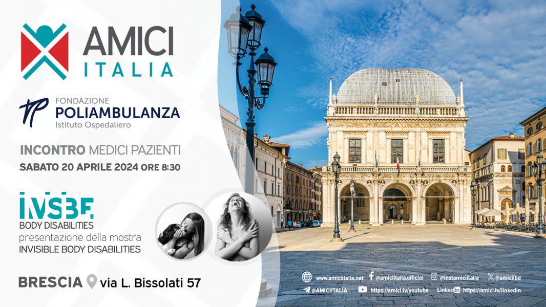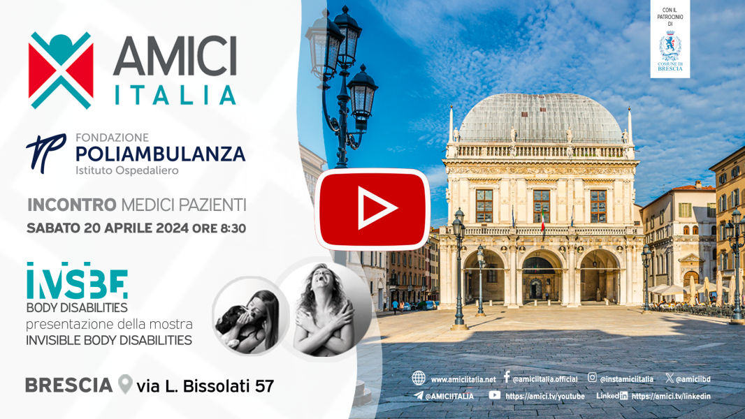 Pubblichiamo la registrazione dell’incontro medici-pazienti che si è svolto sabato 20 APRILE 2024 ORE 8:30 a Brescia presso la Fondazione Poliambulanza in via I. Bissolati, 57 con la presentazione della mostra Invisible Body Disabilities®