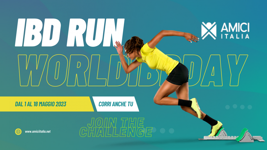 In occasione della Giornata Mondiale 2023 siamo felici di presentarvi l'iniziativa IBD Run, un movimento che coinvolge pazienti affetti da Malattie Infiammatorie Croniche dell'Intestino, medici, infermieri, rappresentanti delle aziende farmaceutiche e rappresentanti delle Istituzioni, con l'obiettivo di sensibilizzare l'opinione pubblica sull'importanza del movimento nella gestione di queste patologie. Chiederemo a tutti coloro che vorranno manifestare il proprio sostegno a questa iniziativa di camminare/correre/fare movimento dall'1 al 18 maggio e per ogni km percorso le aziende farmaceutiche che aderiscono faranno una donazione ad AMICI. Il 19 Maggio premieremo chi per ogni categoria avrà percorso il maggior numero di km, e poi il vincitore assoluto