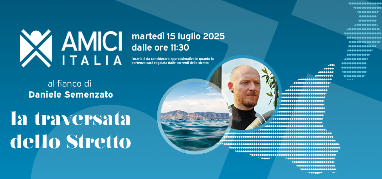 Il 15 luglio 2025 sarà una data speciale: Daniele attraverserà a nuoto lo Stretto di Messina per sostenere AMICI Italia e lanciare un messaggio potente di speranza, coraggio e rinascita.