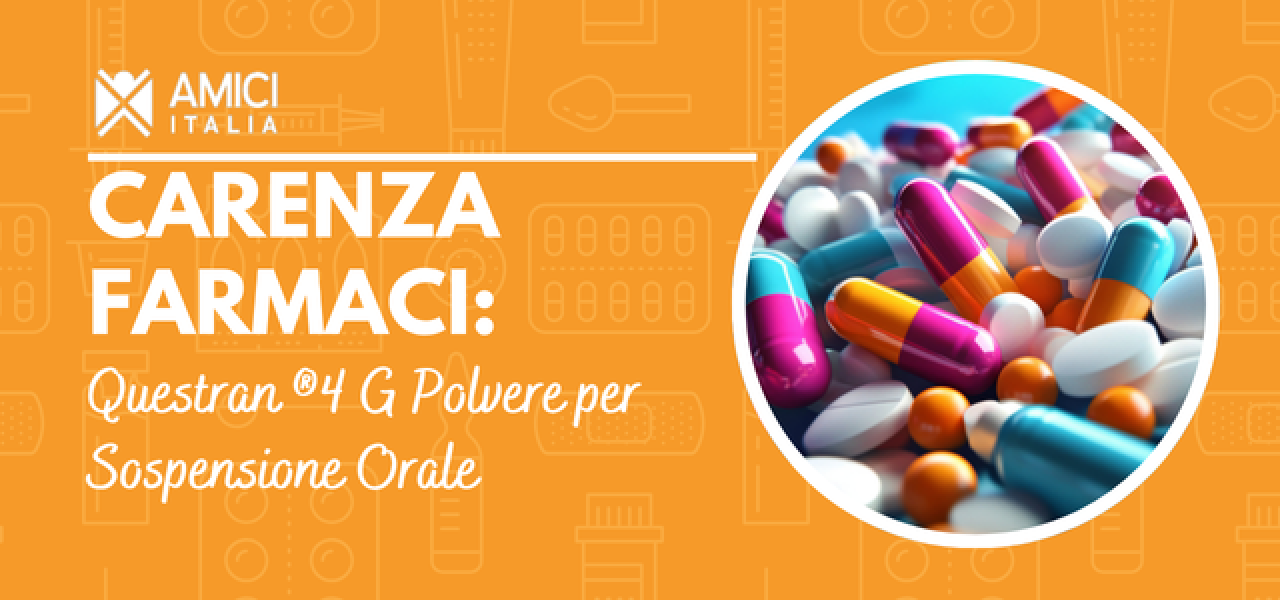 In risposta alle numerose segnalazioni ricevute in merito alla carenza del farmaco Questran 4 G Polvere per Sospensione Orale, AMICI ETS ha contattato l'azienda produttrice Cheplapharm e l'Agenzia Italiana del Farmaco (AIFA) per ottenere chiariment