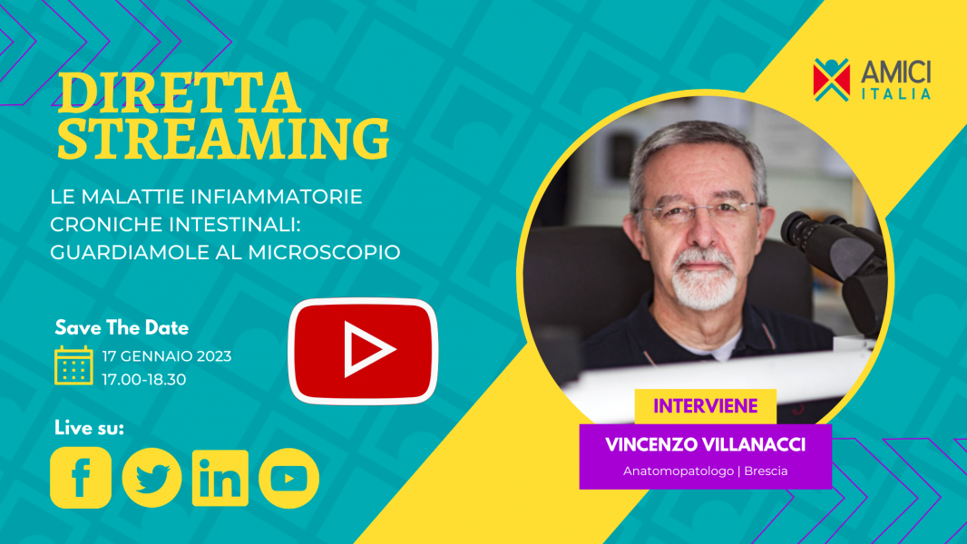 Pubblichiamo la registrazione del webinar “Le malattie infiammatorie croniche intestinali: guardiamole al microscopio” con il Dott. Vincenzo Villanacci dell'Istituto di Anatomia ed Istologia Patologica ASST-Spedali Civili Brescia che si è svolto Martedì 17 Gennaio 2023